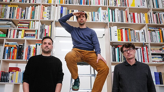 Za vznikem knihy stojí (zleva): Milan Nedvěd, který se postaral o originální design, fotograf Jan Holkup a Tomáš Pospěch z nakladatelství PositiF. (2. června 2025)