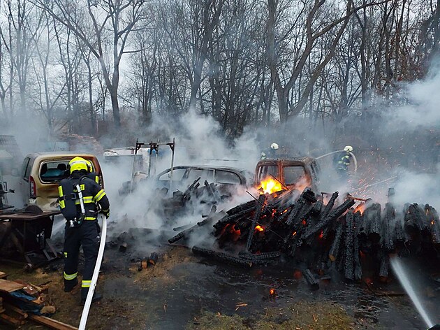 Požár uskladněného dřeva a automobilu v Opatovicích. (17.března 2025)