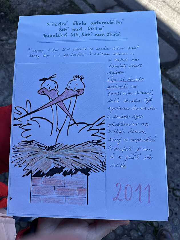 Čápi se v areálu automobilní školy zabydleli v roce 2011.