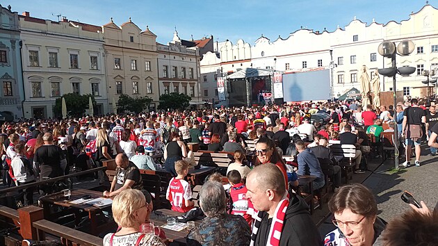 Fanoušci hokejových Pardubic se schází na Pernštejnském náměstí. (29. dubna 2025)