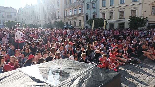 Fanoušci hokejových Pardubic se schází na Pernštejnském náměstí. (29. dubna 2025)
