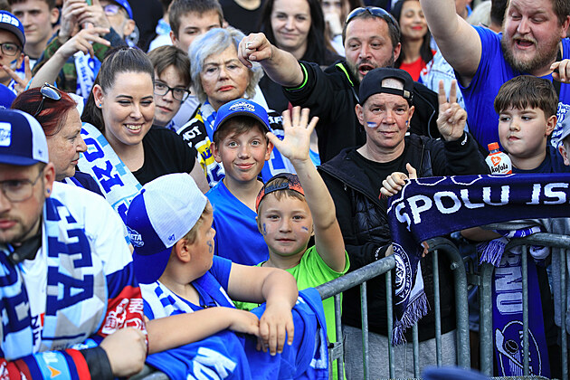 Brněnští fanoušci se při posledním zápase finále extraligy sešli na Zelném trhu. (29. dubna 2025)