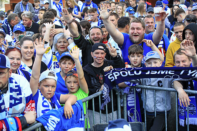 Brněnští fanoušci se při posledním zápase finále extraligy sešli na Zelném trhu. (29. dubna 2025)