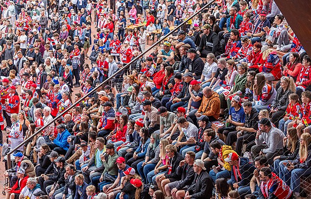 Do areálu Automatických mlýnů přišlo podpořit pardubické hokejisty v prvním finále extraligy proti brněnské Kometě několik stovek fanoušků. (17. dubna 2025)