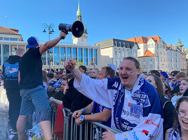 Fanoušci brněnské Komety se sešlo při šestém zápasu finálové série na Zelném trhu v Brně. (27. dubna 2025)