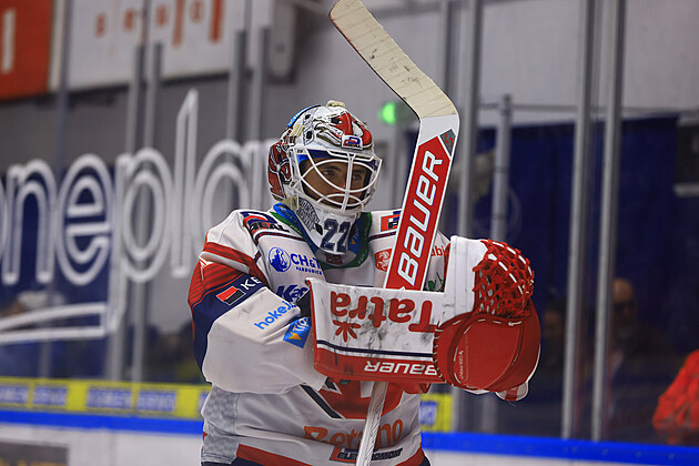 Pardubický brankář Roman Will ve finále s Kometou Brno.