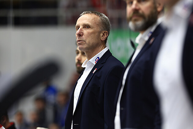 Pardubický trenér Miloš Hořava sleduje dění na ledě během šestého finále proti Kometě Brno.