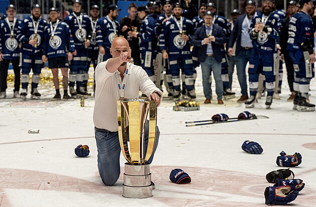 Šéf Komety Libor Zábranský se raduje ze zisku extraligového titulu.