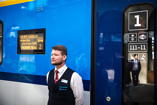 České dráhy představily novou soupravu ComfortJet. Tyto vlaky budou jezdit na vnitrostátních linkách, později se s nimi počítá na trasách do Berlína, Hamburku, Budapešti nebo Štýrského Hradce. Akce se zúčastnil ministr dopravy Martin Kupka. (9. dubna 2024)