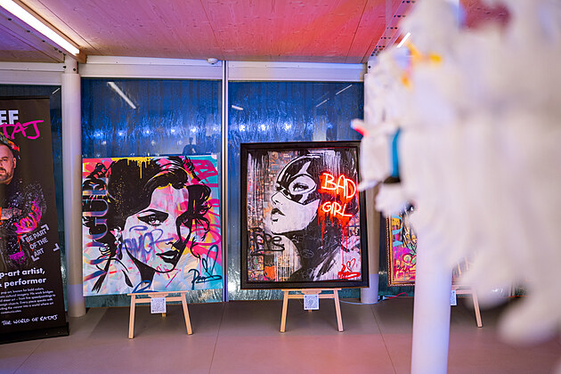 Ratajovy výrazné obrazy přitahovaly na světové výstavě pozornost už z dálky. (19. září 2025)