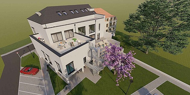 Vizualizace knihovny ve Skutči, která začne sloužit na přelomu let 2025 až 2026.