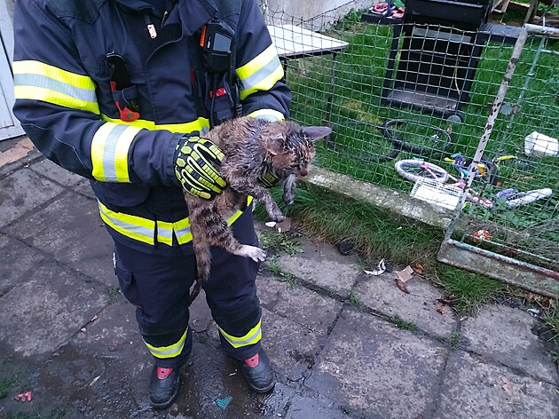 Čtyřnohého mazlíčka z disku kola museli vysvobodit hasiči.