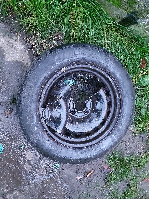 Čtyřnohého mazlíčka z disku kola museli vysvobodit hasiči.