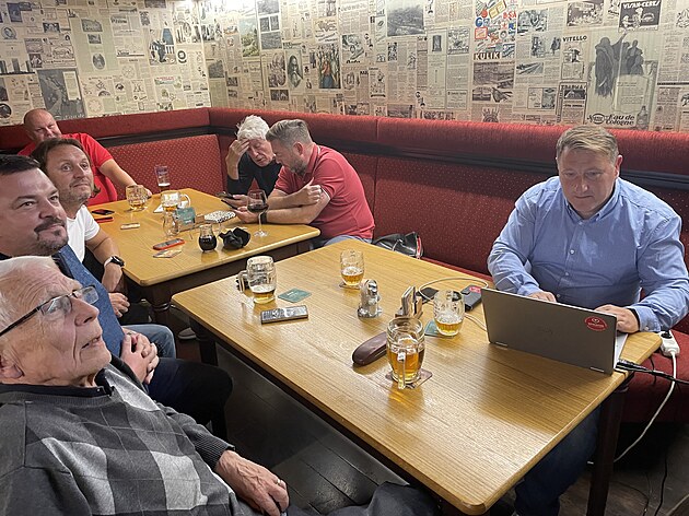 V partaji lídra René Živného nebylo veselo. Spolu s Františkem Brendlem a Tomášem Pelikánem sledoval neuspokojivý volební výsledek.