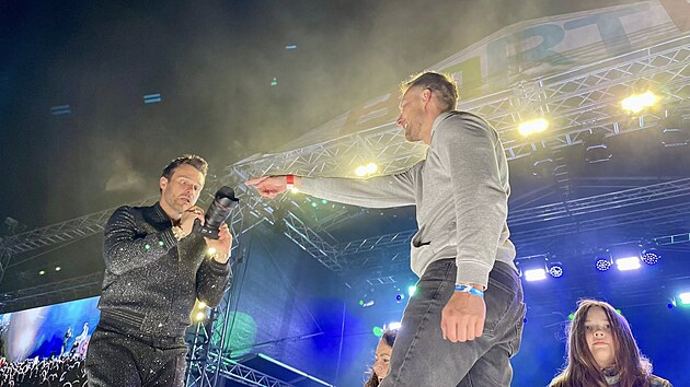 Leoš Mareš řádil se svými fanoušky, fotil je a tančil s nimi přímo na pódiu. (17. května 2025)