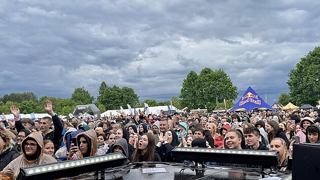 Návštěvníci zpívali a tančili dešti navzdory. (17. května 2025)