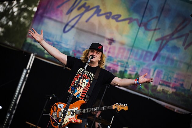 Frontman kapely Vypsaná Fixa Márdi na Majálesu Pardubice 2025. (17. května 2025)