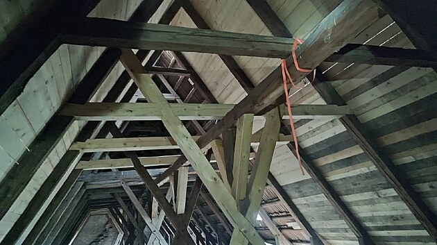 Kromě střešního pláště musely být vyměněny poškozené trámy krovu.