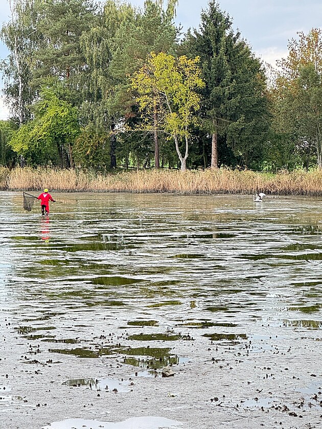 Labutí mláďata uvázla v bahně. S jejich záchranou pomohli hasiči z Přelouče. (30.září 2025)