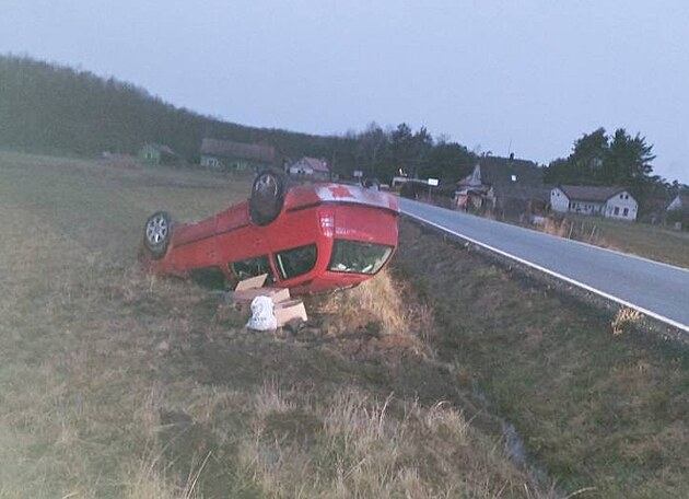 Další auto otočené na střechu hasiči vyprošťovali v Újezdu u Sezemic. Řidič s vozem pravděpodobně nepřizpůsobil rychlost vozidla a při průjezdu pravotočivé zatáčky dostal smyk a s převráceným vozidlem skončil mimo komunikaci. Řidiči byl převezen se zraněním do nemocnice. (8. ledna 2025)