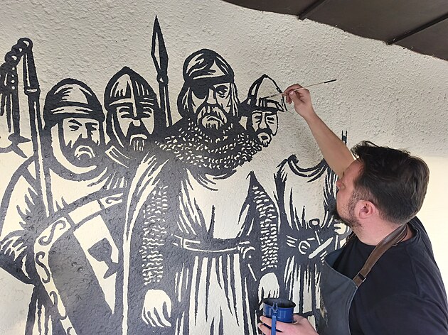 Lucie Muchovičová a Vojtěch Donát vkusně vyzdobili autobusové zastávky v centru Poličky. Malby připomínají poličské pověsti.