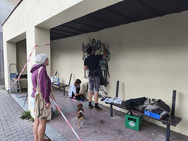 Lucie Muchovičová a Vojtěch Donát vkusně vyzdobili autobusové zastávky v centru Poličky. Malby připomínají poličské pověsti.