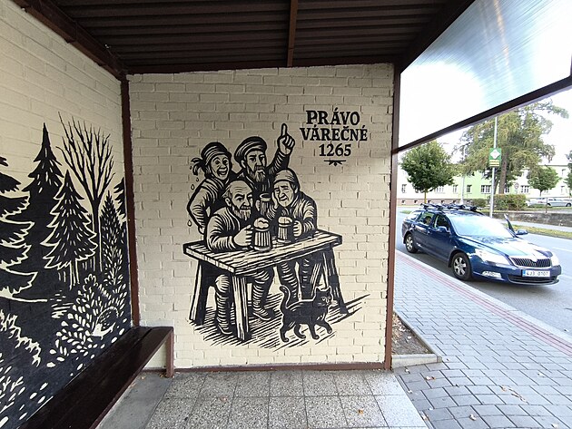 Lucie Muchovičová a Vojtěch Donát vkusně vyzdobili autobusové zastávky v centru Poličky. Malby připomínají poličské pověsti.