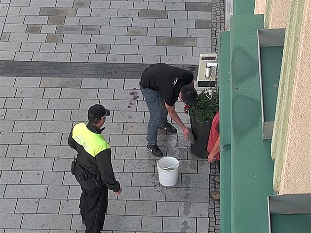 „Zatímco hlídka řešila muže za znečištění veřejného prostranství, prodavačka mladíkovi připravila kýbl s vodou, aby provedl úklid pomočeného květináče. Strážníci dohlédli na to, aby byl úklid řádně dokončen a celou záležitost vyřešili tak, že mladému muži uložili blokovou pokutu ve výši tisíc korun,“ dodala Uskobová.