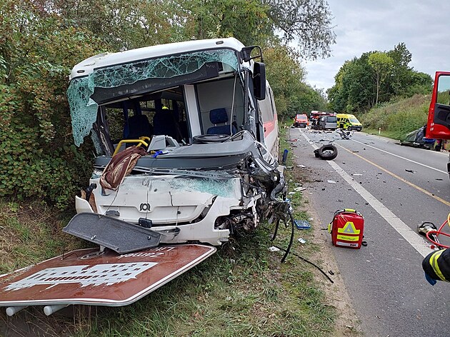 Na silnici I/35 u Cerekvice nad Loučnou došlo k nehodě autobusu a osobního auta. Na místě bylo devět zraněných lidí. (18. září 2025)
