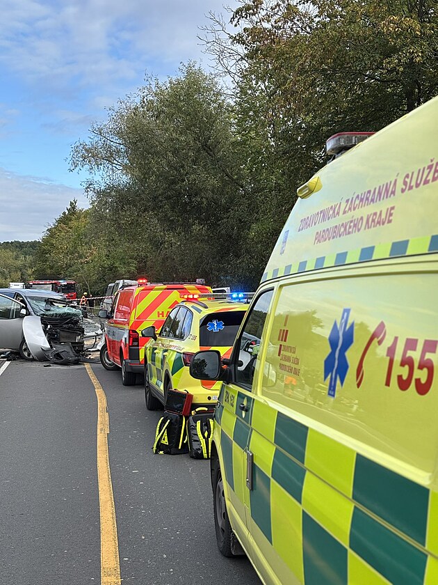 Na silnici I/35 u Cerekvice nad Loučnou došlo k nehodě autobusu a osobního auta. Na místě bylo devět zraněných lidí. (18. září 2025)