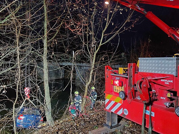 Auto po nehodě skončilo v řece. Do Chrudimky unikl olej z motoru. (17.listopadu 2025)