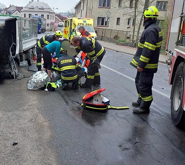 V Hlinsku na Chrudimsku se elektrická multikára srazila s dodávkou. (24. dubna 2025)