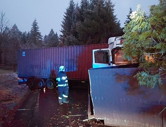 V osadě Blatina se měl kamion vyhýbat srnce, poškodil přitom plot i dům.