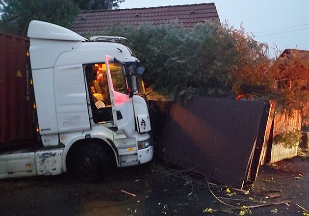 V osadě Blatina se měl kamion vyhýbat srnce, poškodil přitom plot i dům.