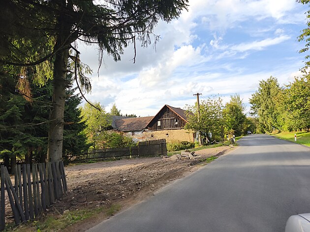 Rekreační chalupa u silnice mezi obcemi Borová a Telecí musela být po loňské nehodě kamionu zbořena. Na snímku je vidět, jak nemovitost zasahovala do komunikace. (9. září 2025)