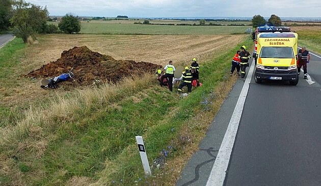 Při nehodě v obci Podhořany u Ronova se zranila při střetu s autem motocyklistka. (23. srpna 2025)