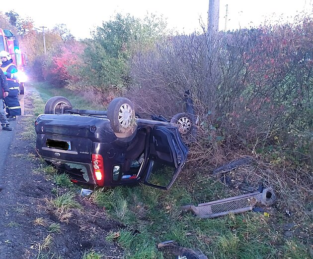 Osmnáctiletý řidič skončil s autem na střeše. (20. října 2025)
