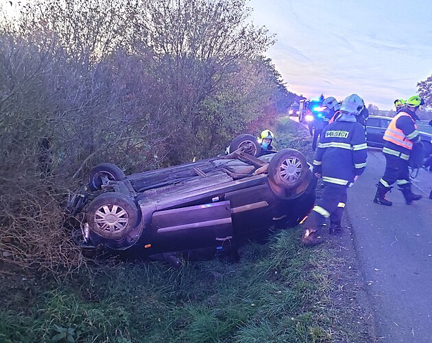 Osmnáctiletý řidič skončil s autem na střeše. (20. října 2025)