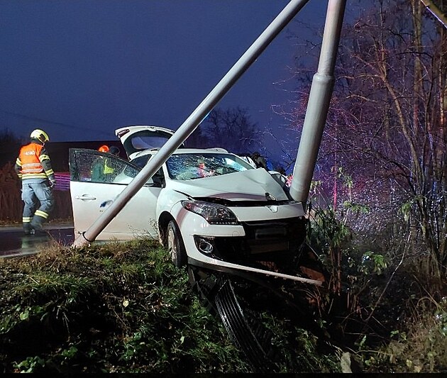 Třiatřicetiletý řidič v Ostřetíně naboural do sloupu. (3. prosince 2024)
