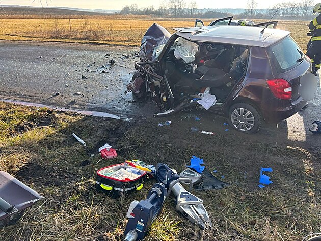 Po nehodě dvou aut v Sopřeči na Pardubicku byly dvě osoby se středně těžkými zraněními převezeny do nemocnice. (28. února 2025)