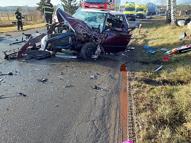 Po nehodě dvou aut v Sopřeči na Pardubicku byly dvě osoby se středně těžkými zraněními převezeny do nemocnice. (28. února 2025)