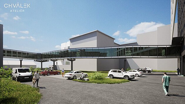 Na jaře 2026 by měly být nadzemním koridorem propojeny tři pavilony Pardubické nemocnice.