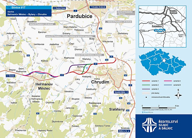 Studie přeložky silnice I/17 je rozdělena na tři samostatné části. Kromě obchvatu Chrudimi zahrnuje obchvat Bylan a Heřmanova Městce.