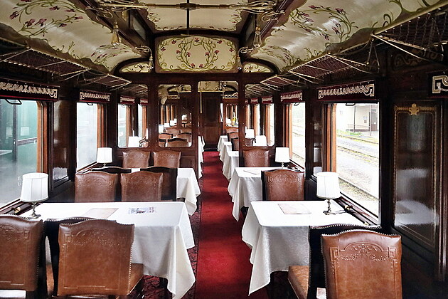 Jídelní vůz z roku 1906 od firmy Ringhoffer je nově ozdobou parních expresů v Pardubickém kraji.