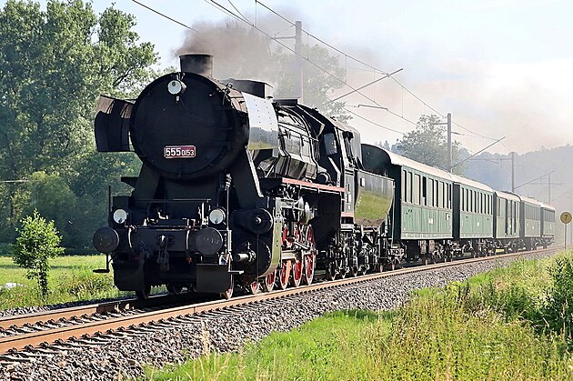 Na pravidelné sobotní jízdy z Dolní Lipky je nasazována parní lokomotiva 555.0153 známější pod přezdívkou Němka.
