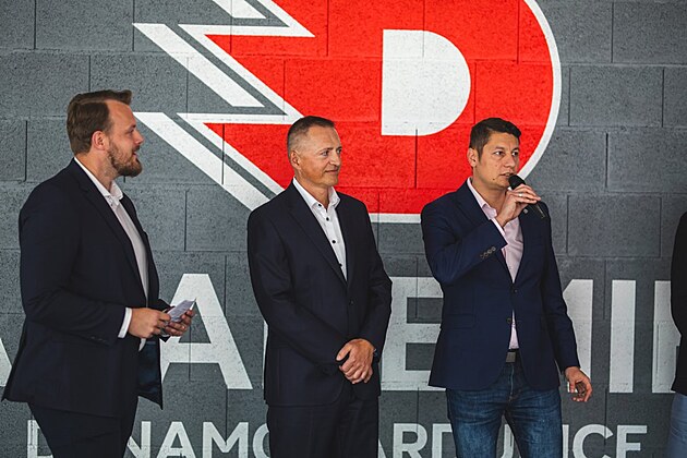 Petr Dědek (uprostřed) při zahájení provozu nové Akademie Dynama Pardubice