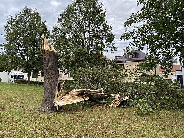 Ve Vysokém Mýtě silná bouřka polámala stromy. (15. září 2025)