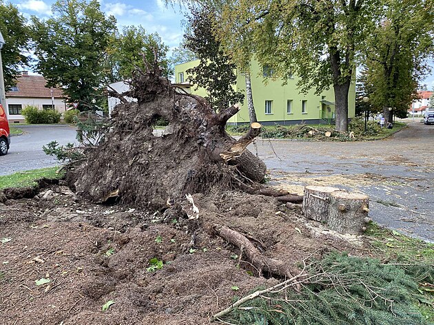 Ve Vysokém Mýtě silná bouřka polámala stromy. (15. září 2025)