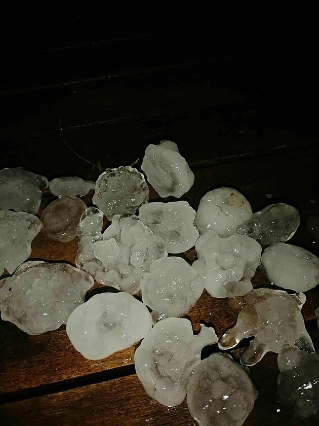 V okolí Vysokého Mýta a Chocně padaly až čtyřcentimetrové kroupy. (15. září 2025)