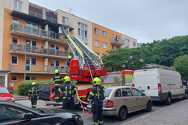 Byt v Trnové zachvátily plameny. Evakuováno bylo přes deset lidí včetně dětí (25. května 2025)